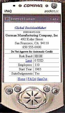 From your PocketPC PDA (or other browser enabled wireless device) Conveniently access the power of D&B Global DecisionMaker from your connected PocketPC by